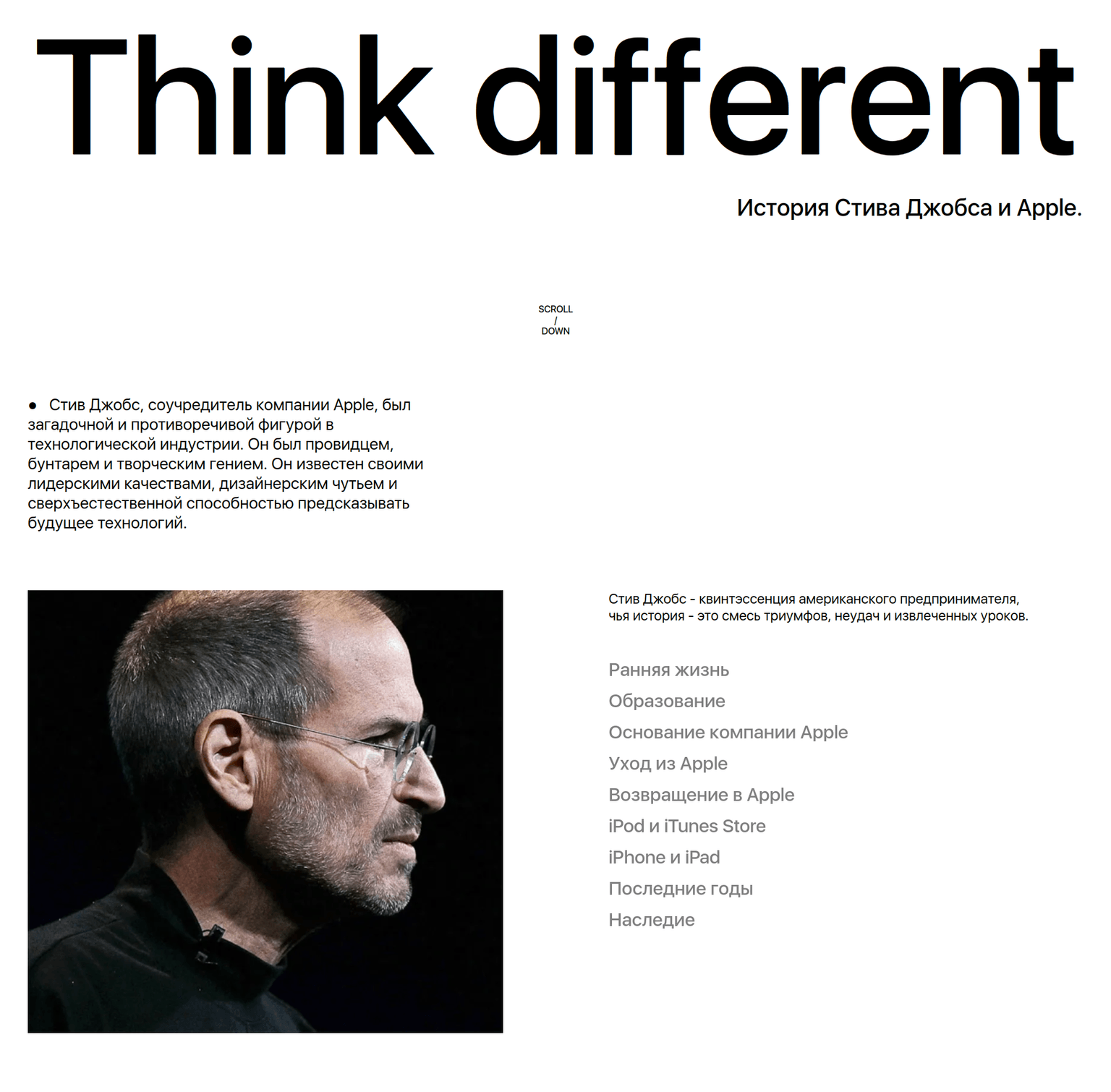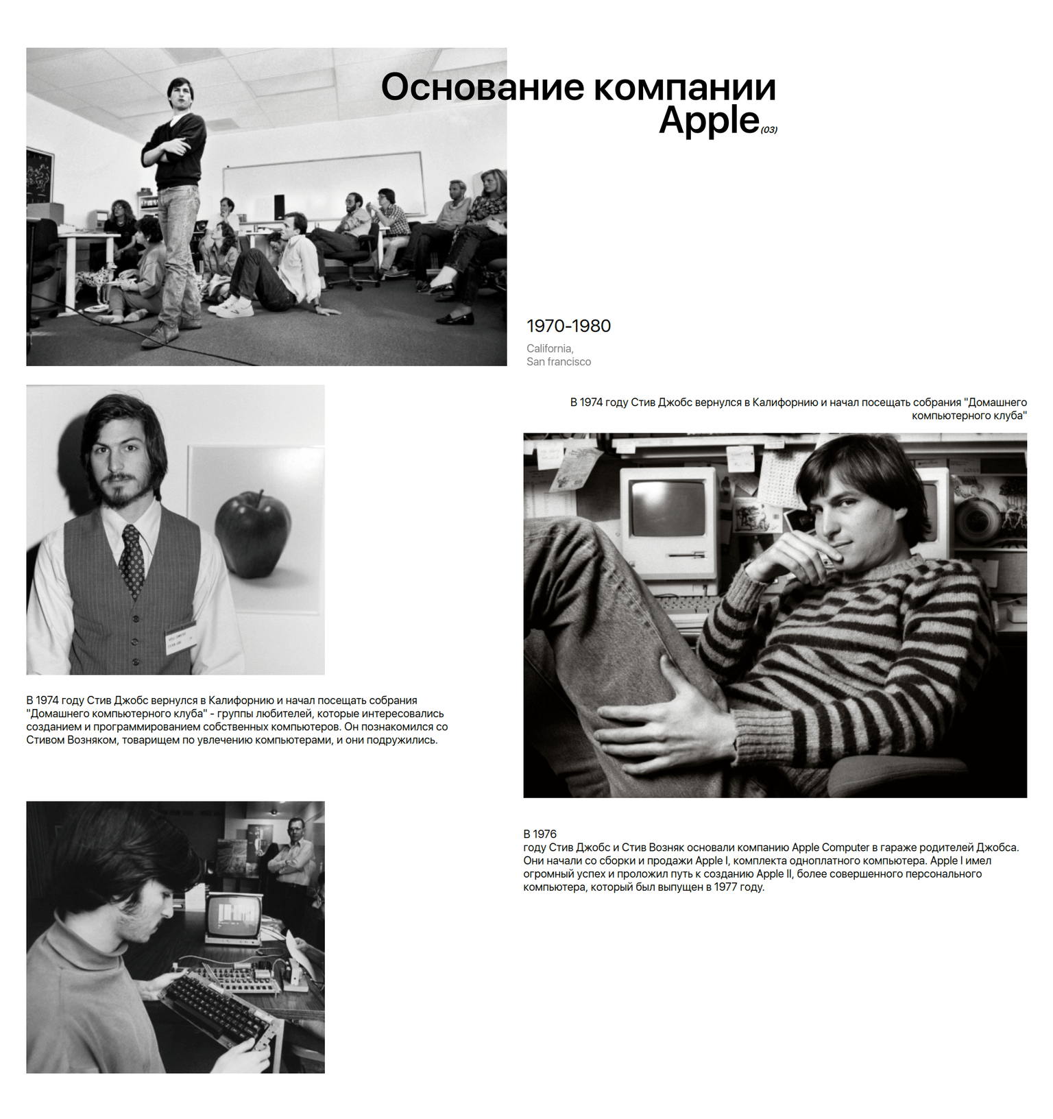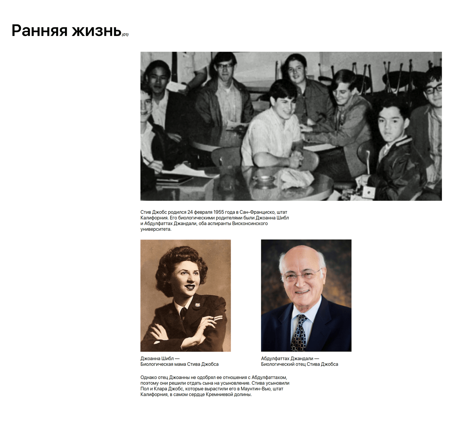 A longread-style website that details the main achievements, history, and key stories of Steve Jobs